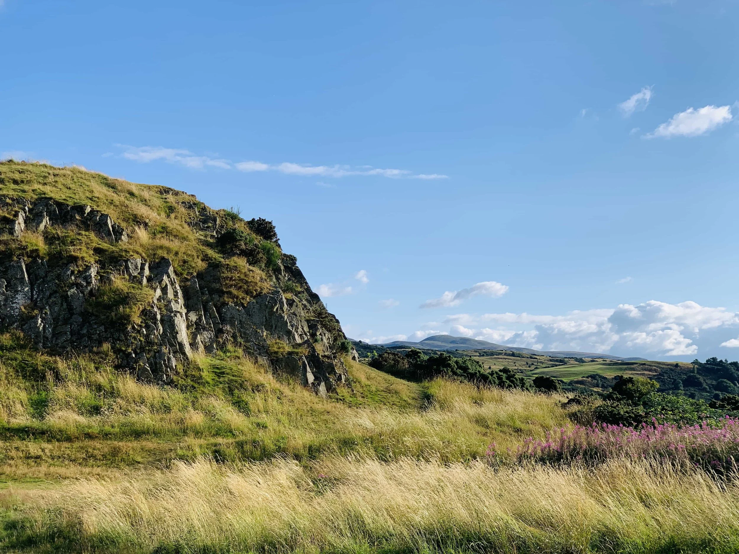 Old Stone Walls & View from the Firth of Forth to the Pentland Hills & Scottish Flora & A Horizon of Hills & Views to the Ocean & Unique Views of Edinburgh Castle & Breezy Hilltop &