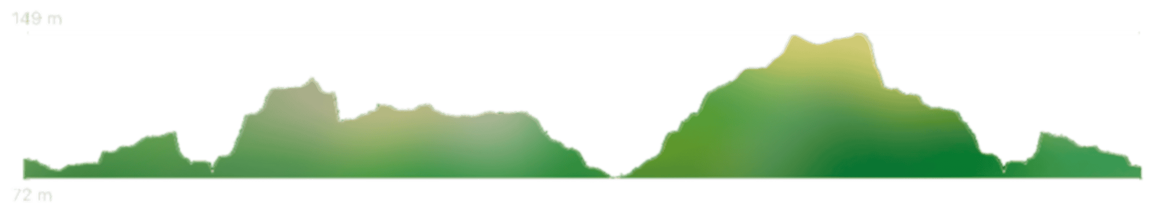 Highest: ~150m/490ft , lowest: ~70m/240ft, all ascents combined: ~200m/670ft